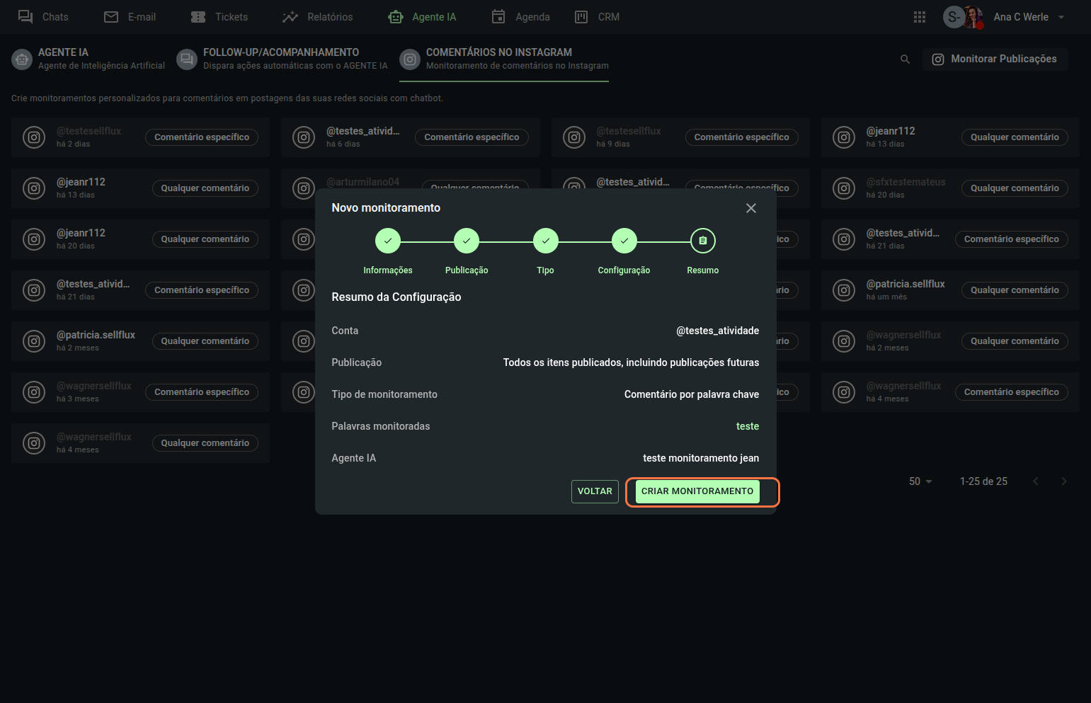 Com isso, seu monitoramento estará ativo, permitindo interagir automaticamente com leads realmente interessados — de forma rápida, inteligente e sem deixar nenhuma oportunidade passar.