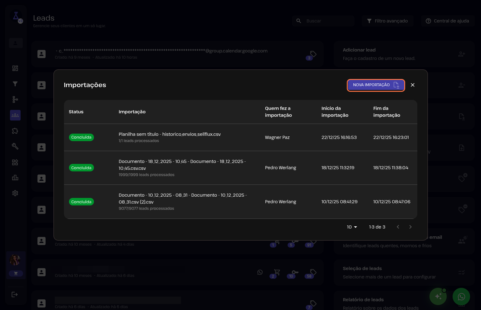 Com todos esses passos concluídos, sua importação estará finalizada — e seus leads já estarão organizados, categorizados e prontos para serem trabalhados dentro do SellFlux.