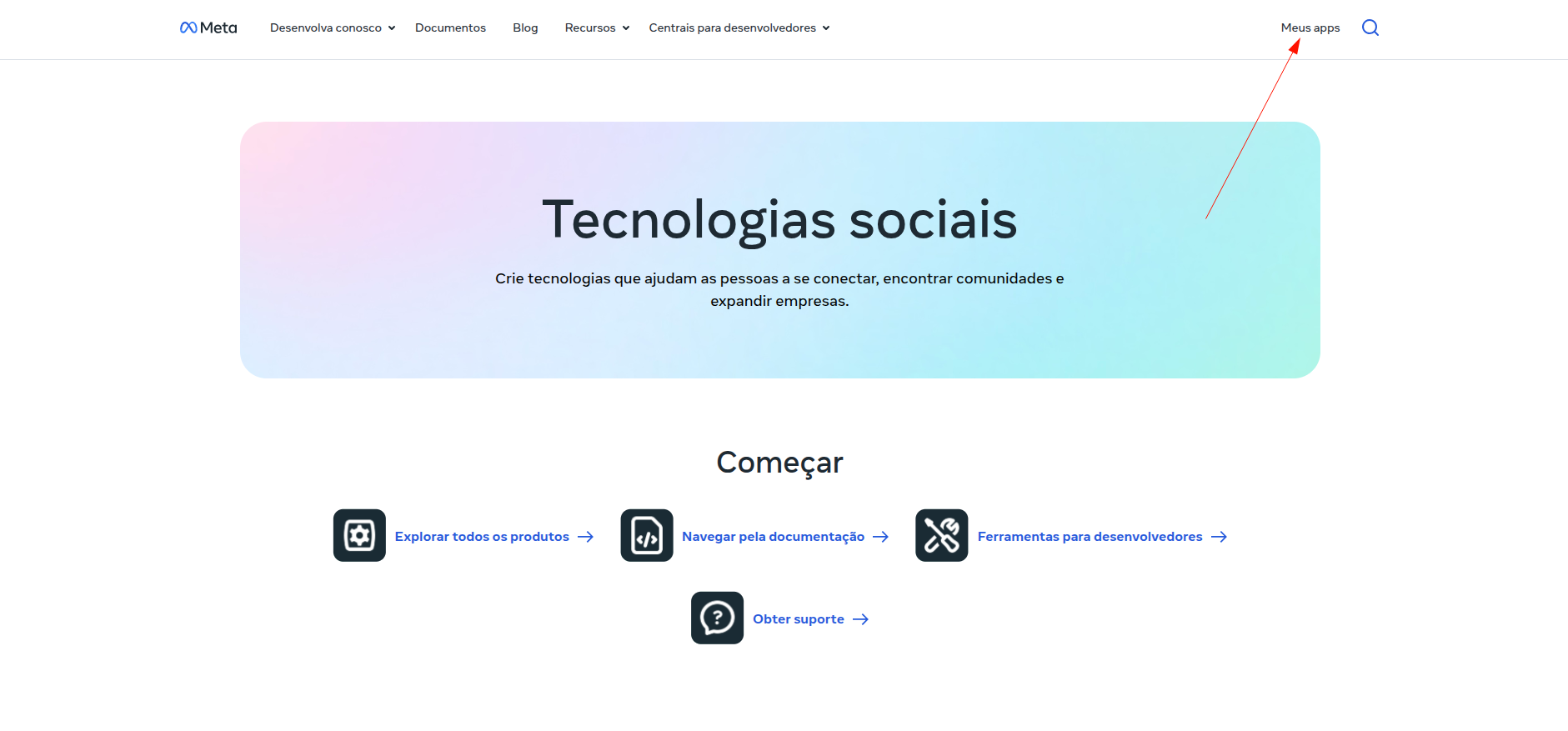 1. Acesse o portal de desenvolvedores da Meta