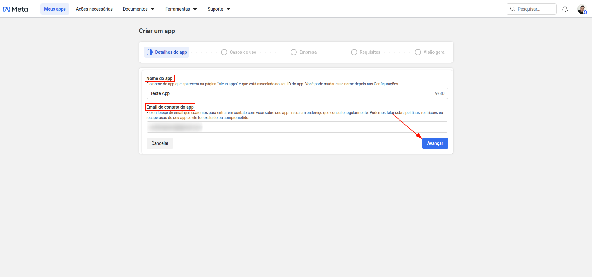Após preencher os dados, clique em “Avançar”.