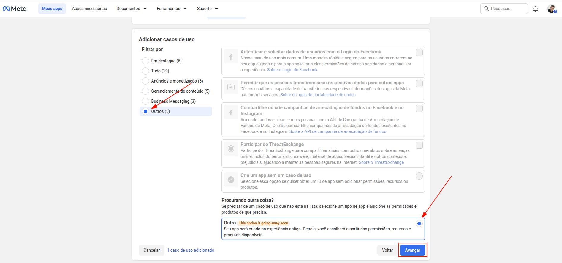 Na tela de seleção, escolha a opção “Outro”.
