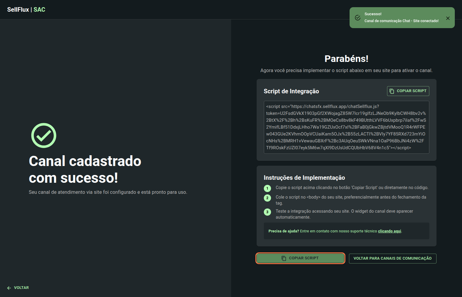Integrar um canal de atendimento eficiente ao seu site é essencial para melhorar a experiência do visitante e aumentar suas oportunidades de conversão. Com o SAC do SellFlux, é possível instalar um chat diretamente em sua página e acompanhar todas as interações de forma centralizada. Neste tutorial, você vai aprender passo a passo como configurar o Chat no seu site, garantindo um atendimento ágil e profissional.