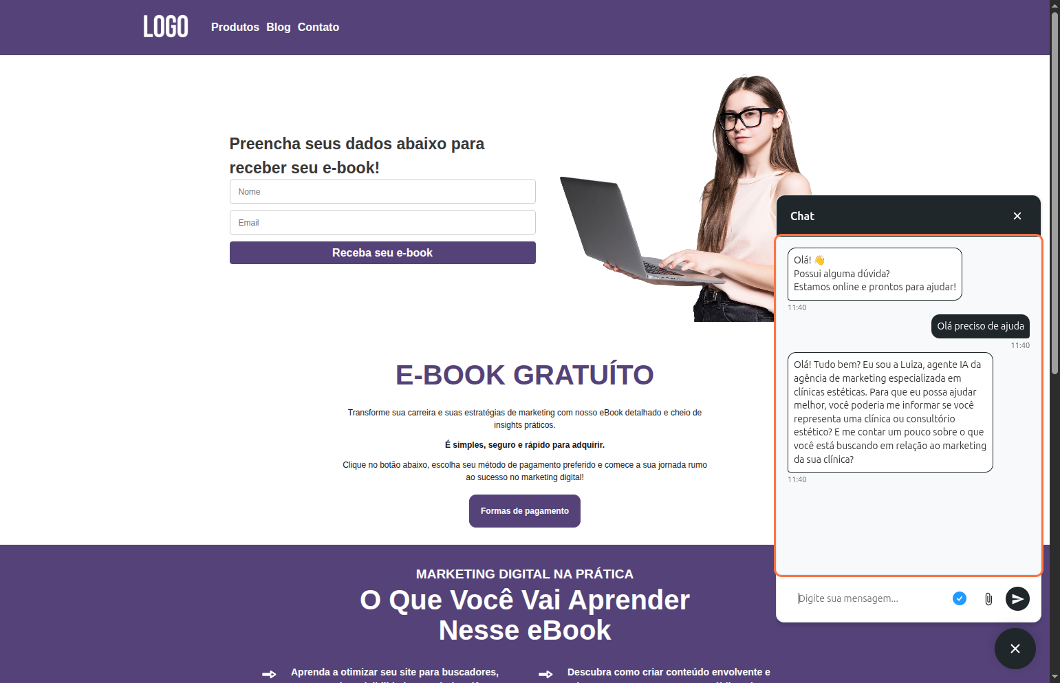 Pronto! Com essas etapas, o chat estará totalmente configurado em sua página, permitindo que seus visitantes iniciem conversas de forma rápida e prática. A integração garante que todas as interações sejam direcionadas corretamente aos departamentos responsáveis, facilitando o atendimento e aumentando a eficiência do seu atendimento.