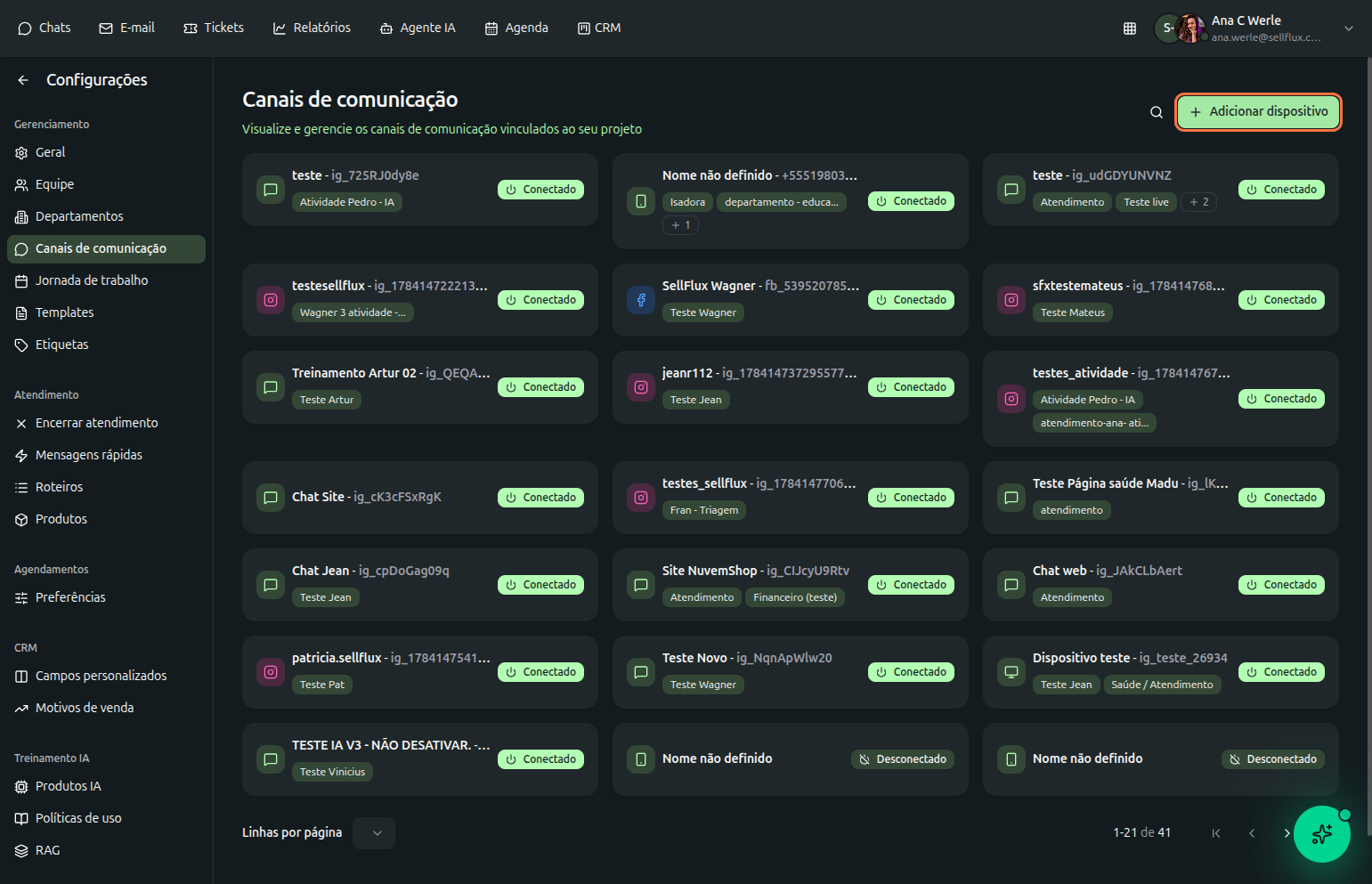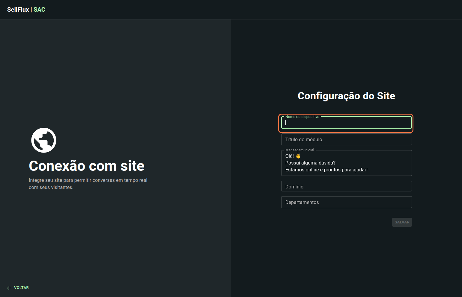No campo Nome do dispositivo, digite o nome desejado (exemplo: Chat - Site). Esse será o nome que ficará vinculado ao canal de comunicação.