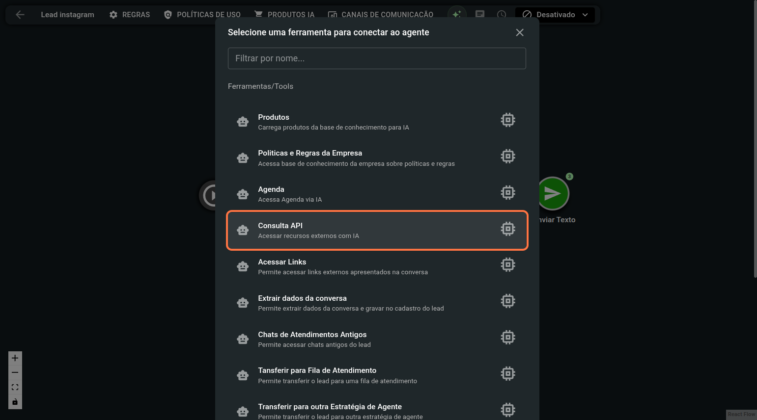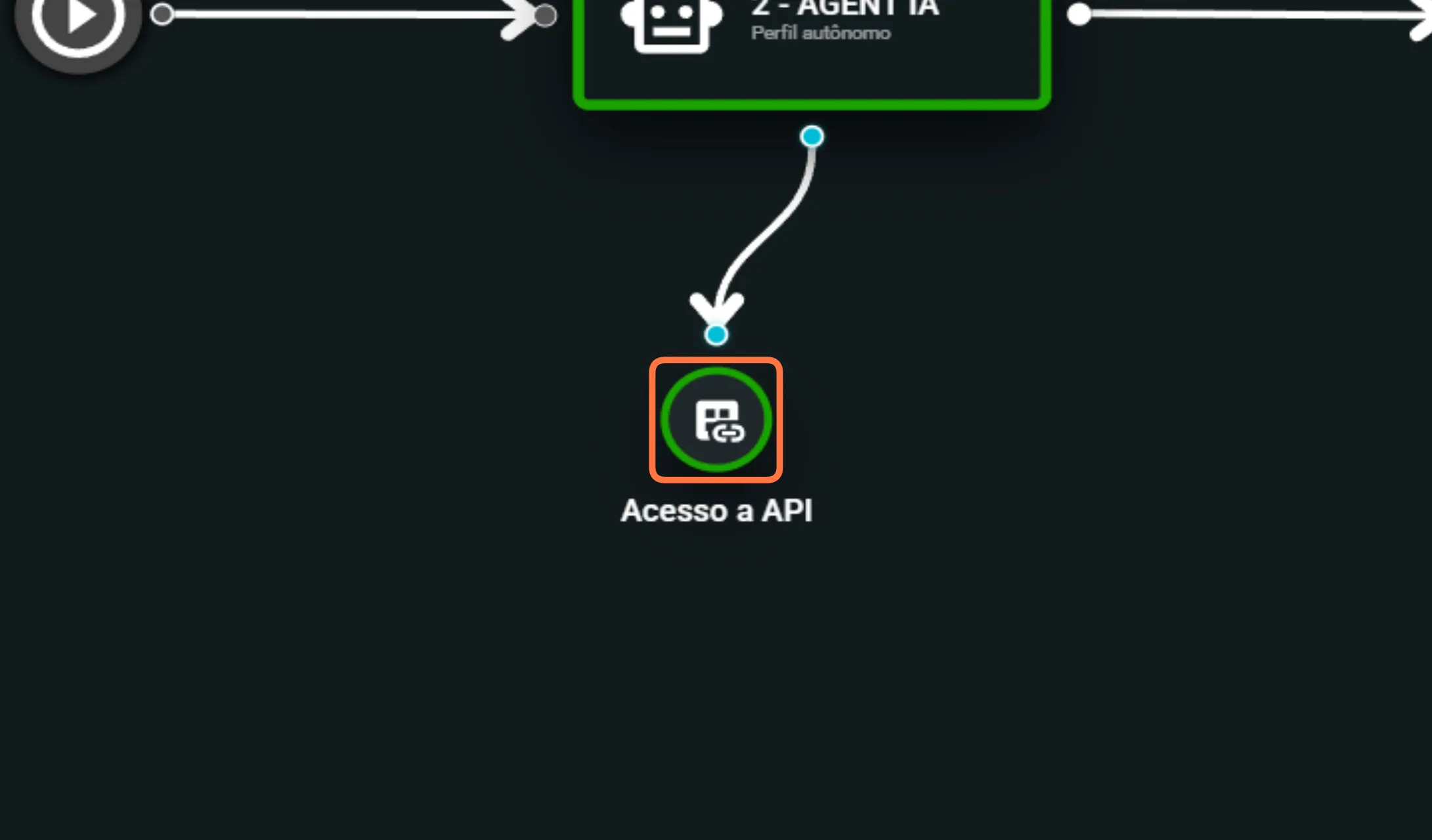 22- Feito esse processo, retorne ao Agente IA, dentro do SAC, e clique na tool de "Acesso à API".