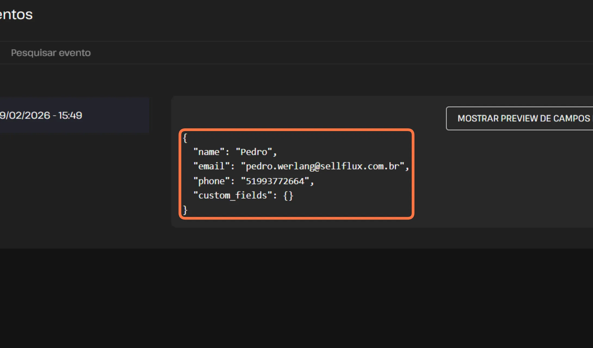 E no webhook custom é possível verificar se os dados estão sendo recebidos corretamente.