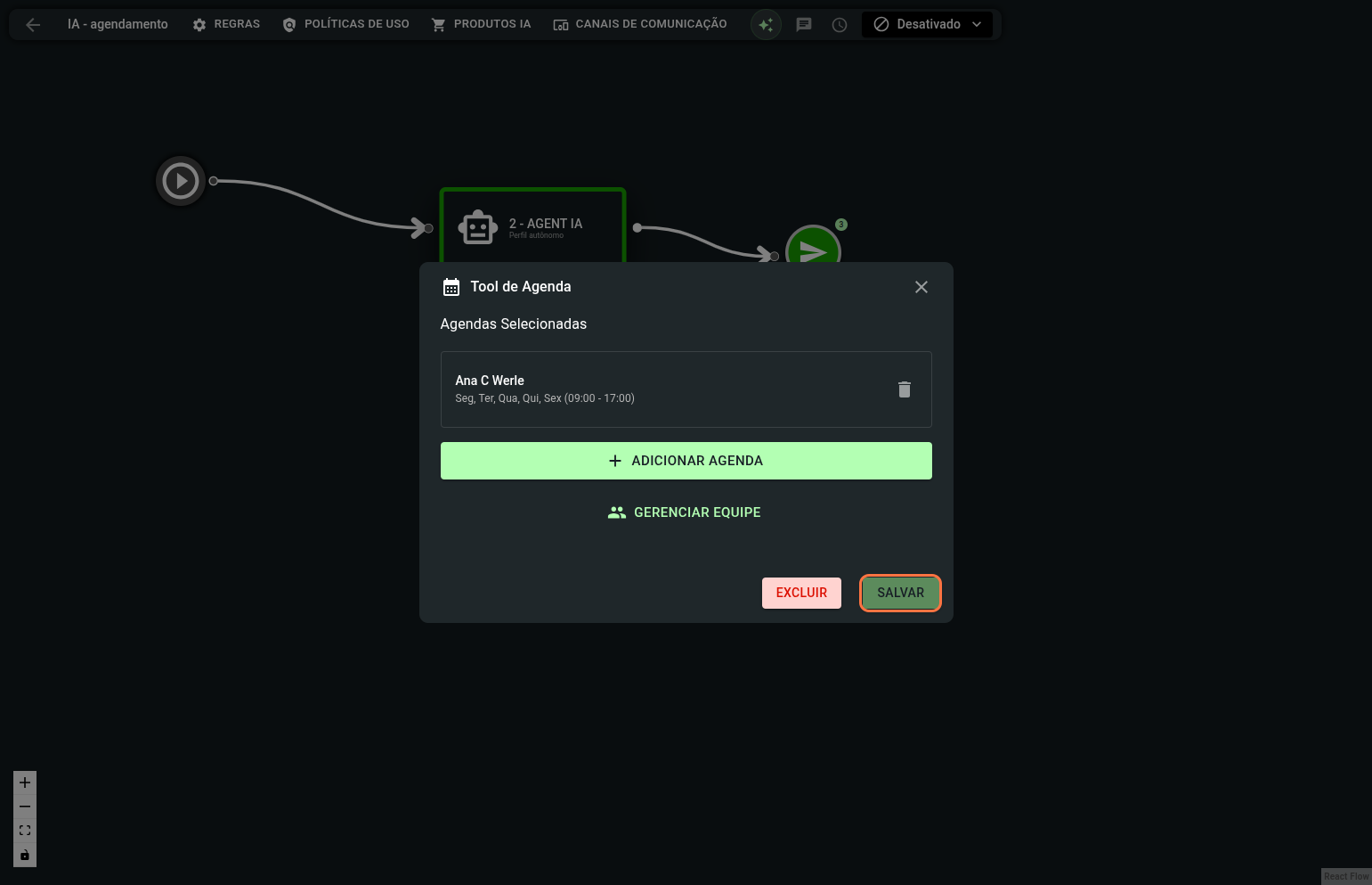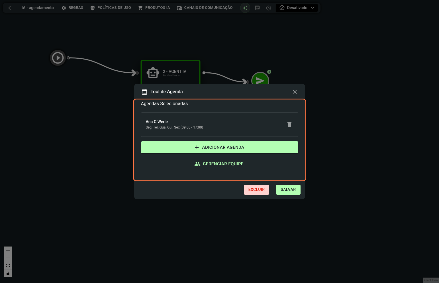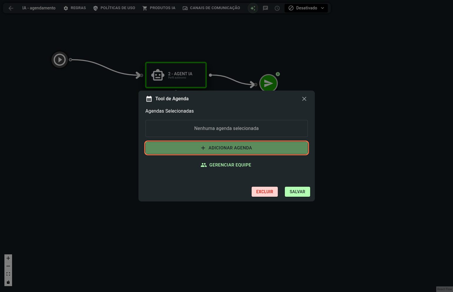 19. No seu agente IA, adicione a tool "Agenda" e clique sobre ela.