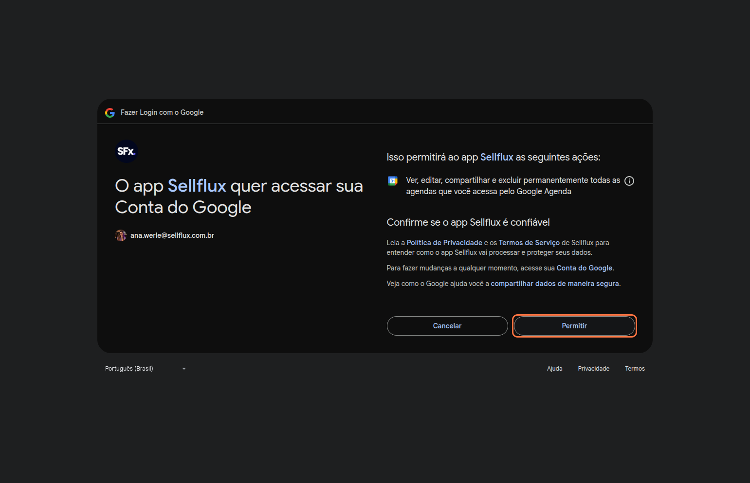 5. Clique em “Permitir” para autorizar o acesso à sua agenda. Com isso sua agenda estará configurada no SAC.