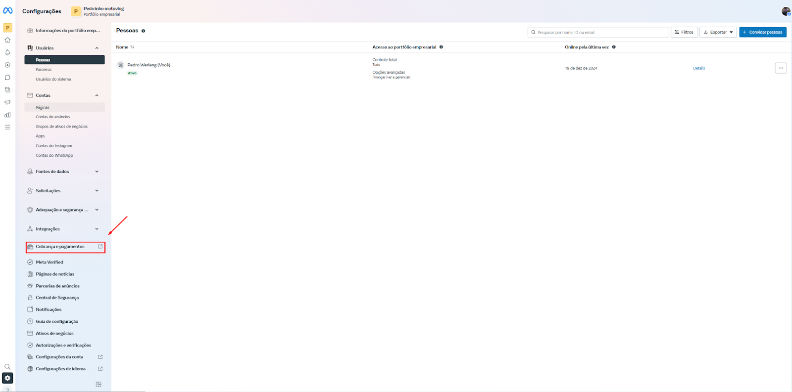 Acesse o Meta Business Suite, e vá na opção de “Cobranças e pagamentos”.