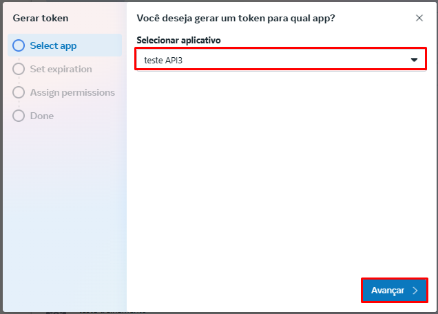 Aqui novamente, iremos selecionar o portifólio em que queremos vincular este App.