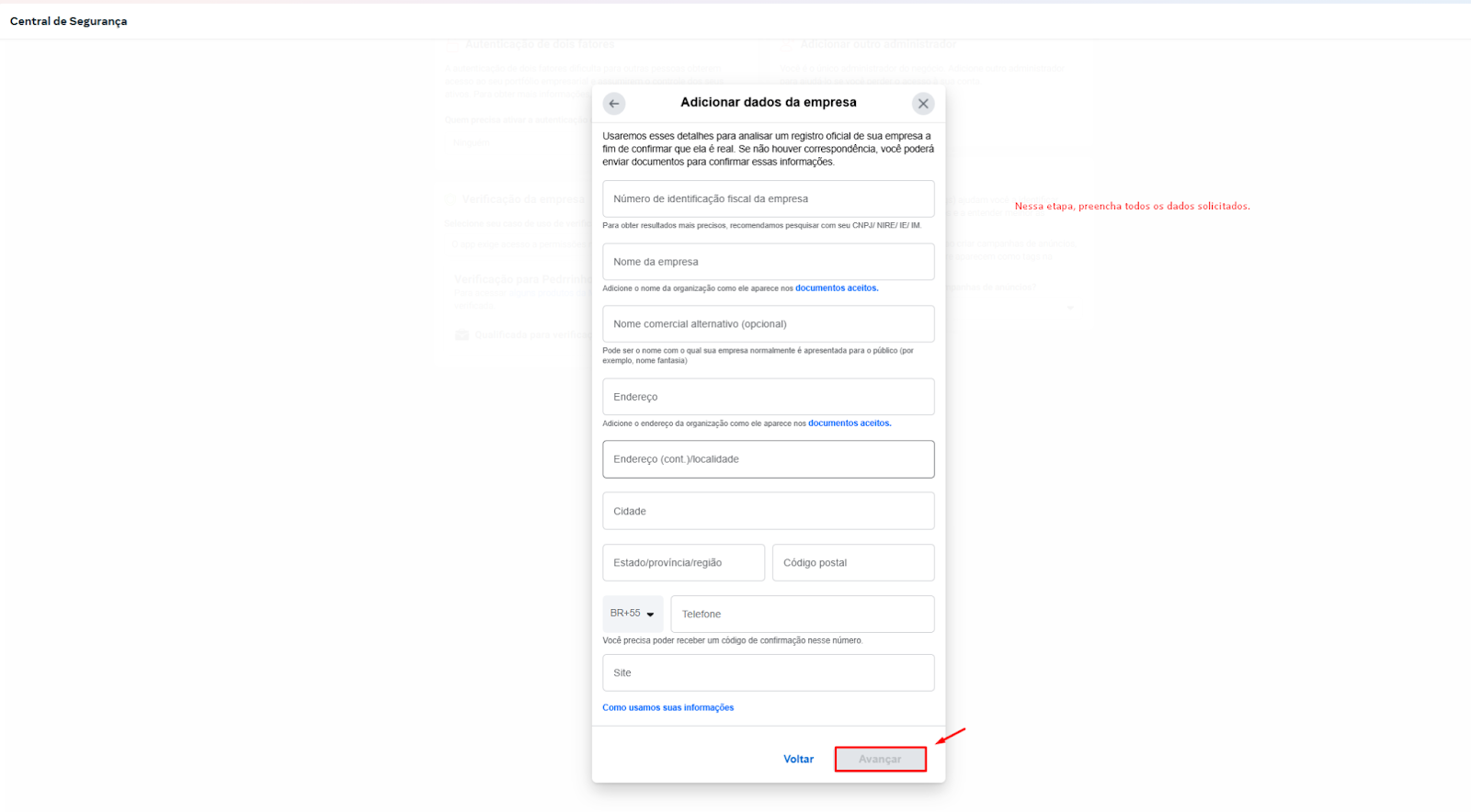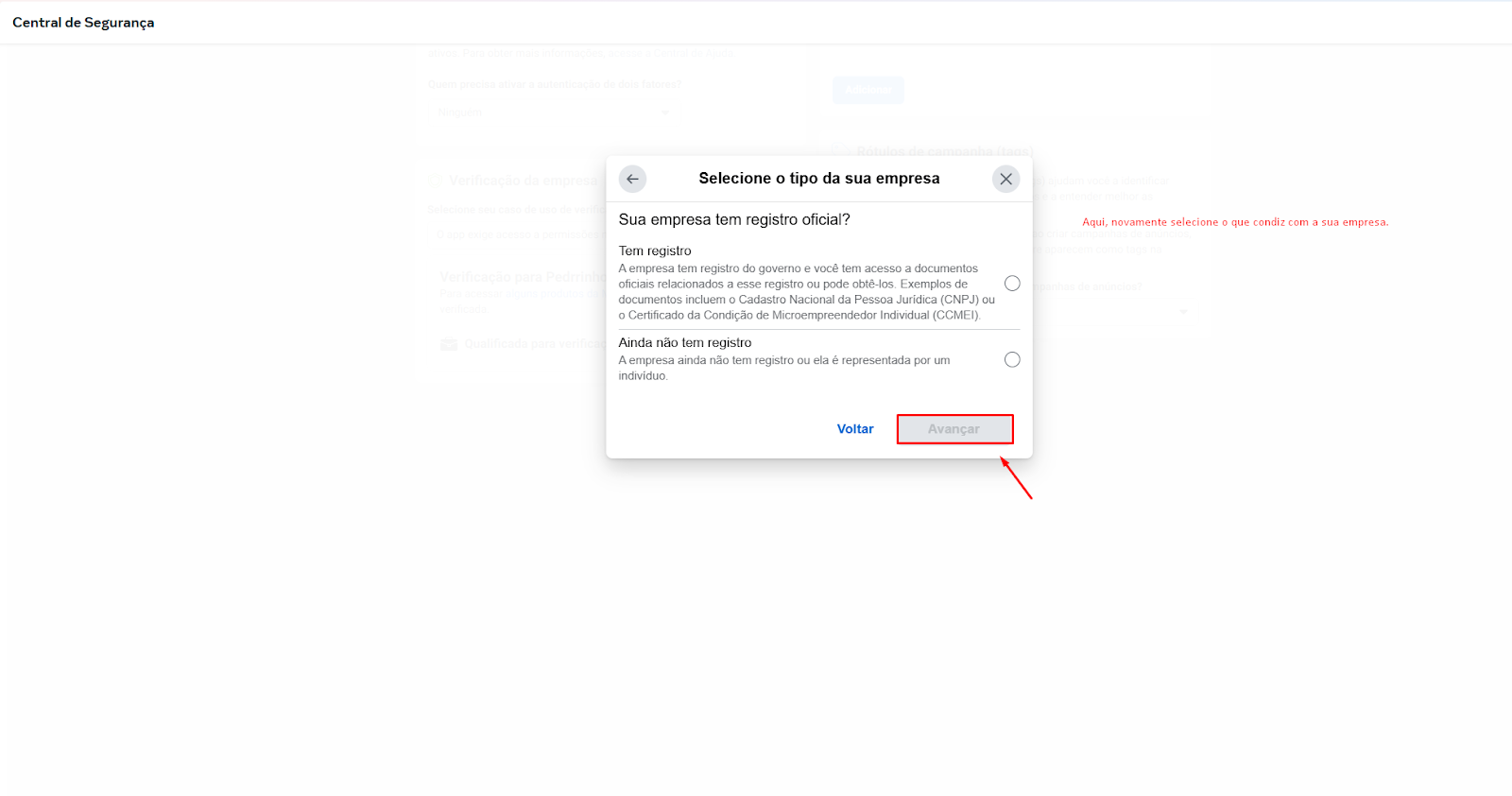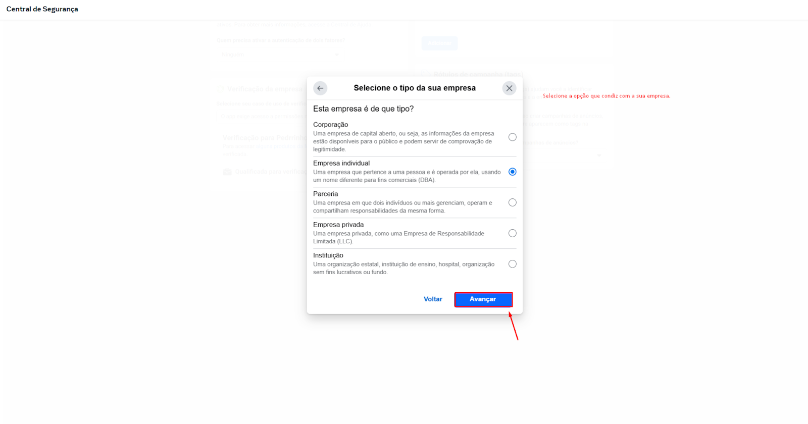 Feito isso, acesse a Central de Segurança e inicie a verificação da sua empresa.