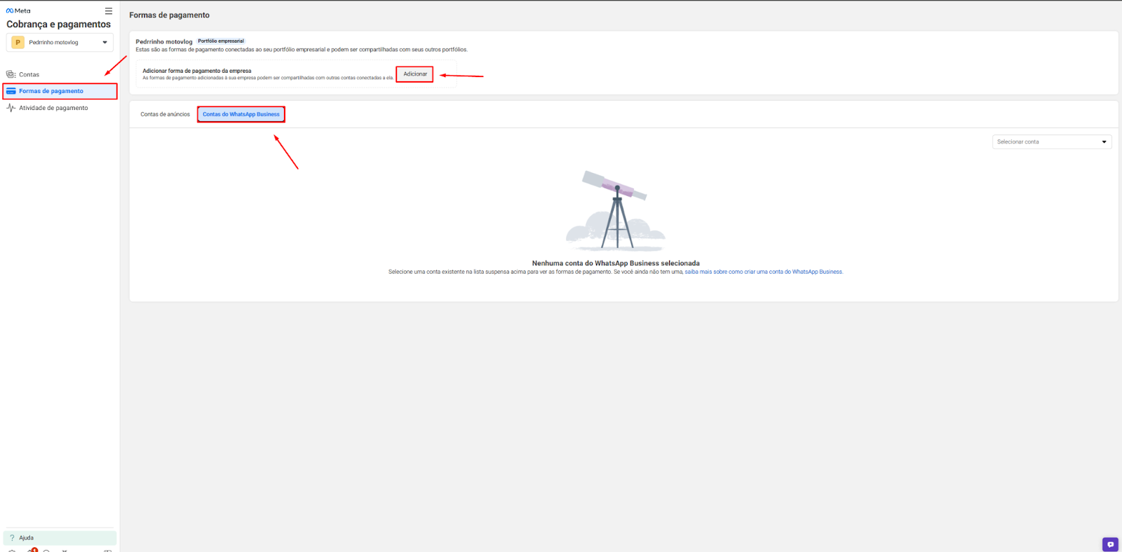 Método de Pagamento Aprovado - A conta deve possuir um método de pagamento válido e aprovado pela Meta. O tempo médio de aprovação é de cerca de 24 horas úteis, mas pode se estender por alguns dias ou semanas, de acordo com, conformidade com os requisitos, revisão de documentos e análise da conta empresarial.