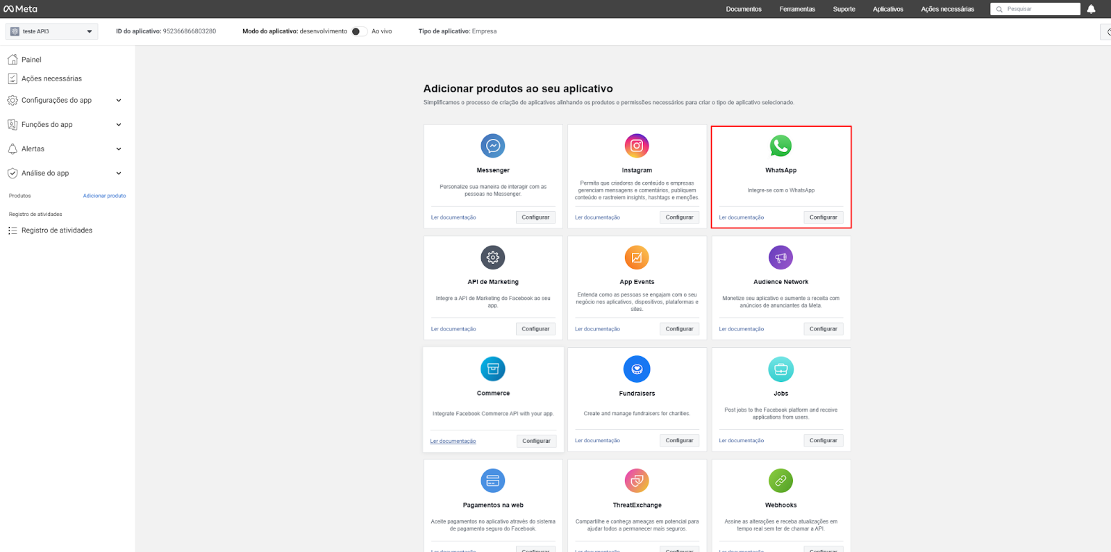 App de Empresa na Meta - É necessário criar um aplicativo corporativo dentro da sua conta empresarial para associá-lo à API do WhatsApp Business.