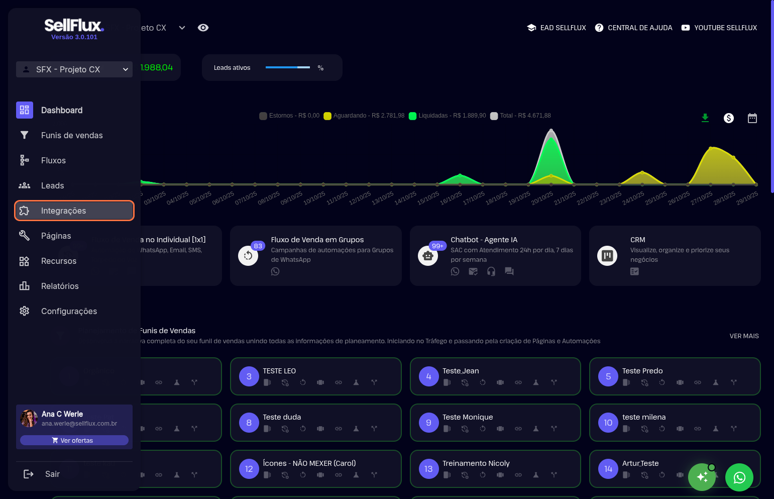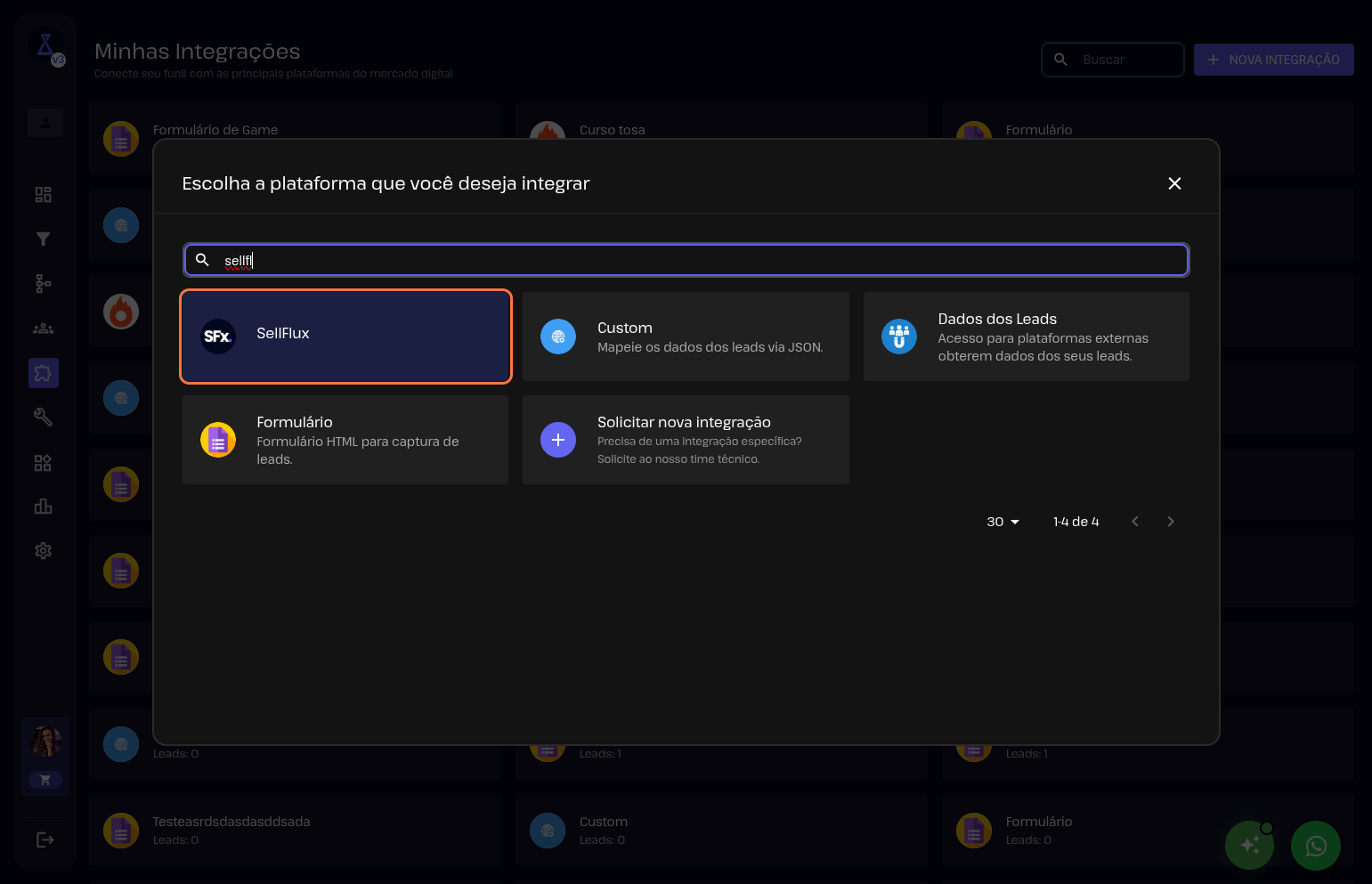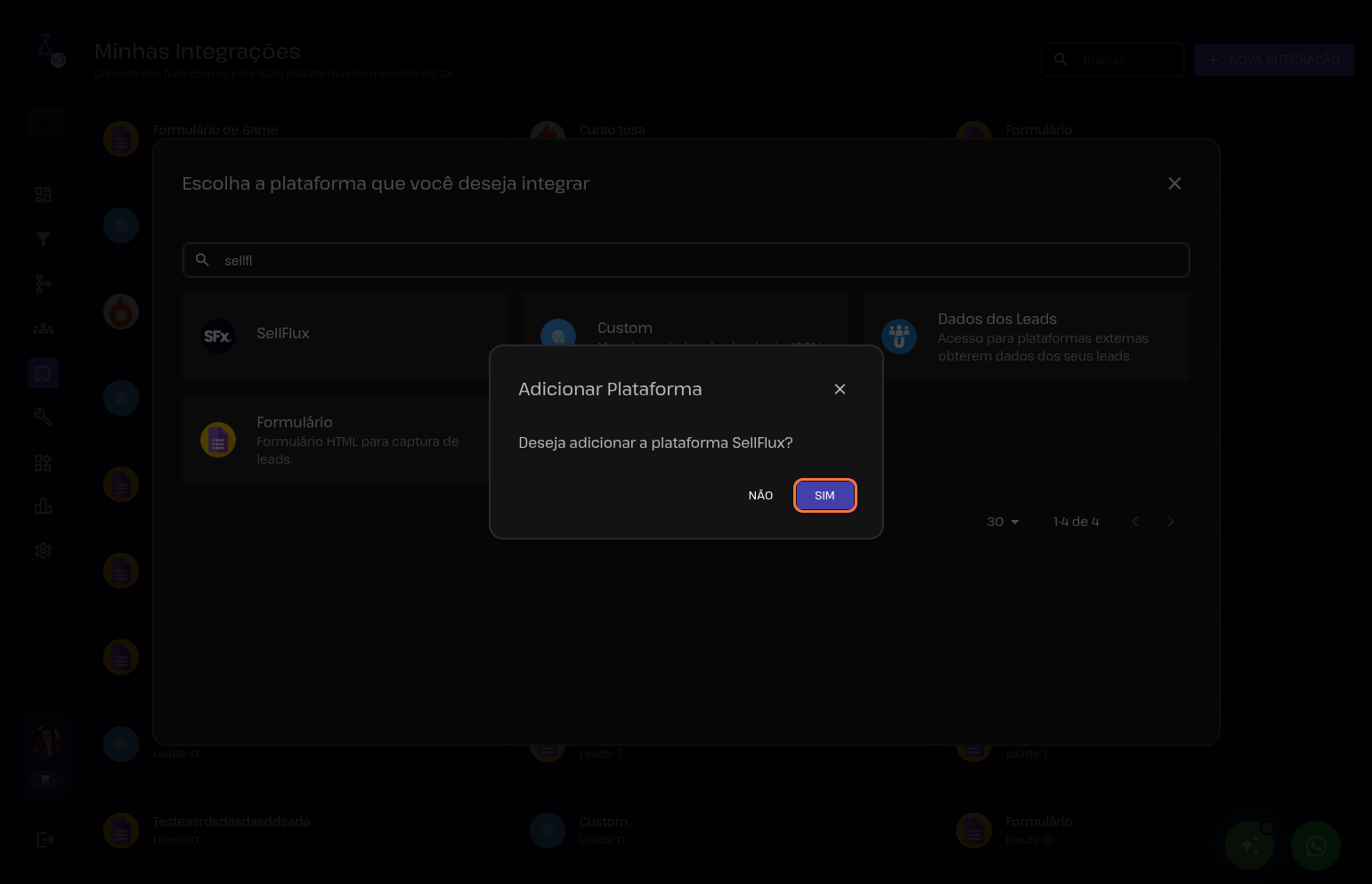 18- Com isso, a integração estará criada e a partir de agora seus lead irão chegar ao Sellflux através dessa integração.