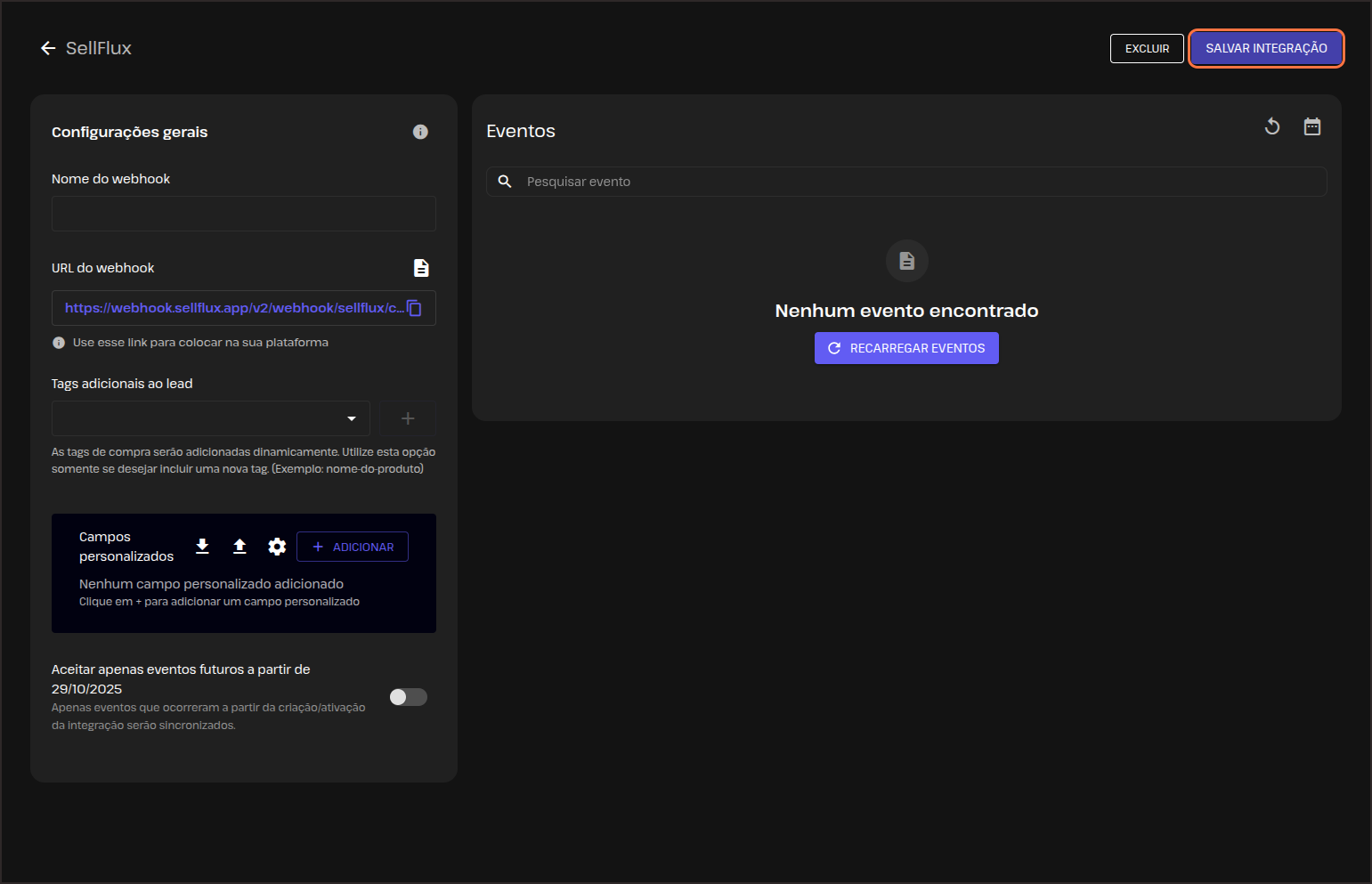 17- No Sellflux, clique em "Salvar Integração", para salvar a integração.