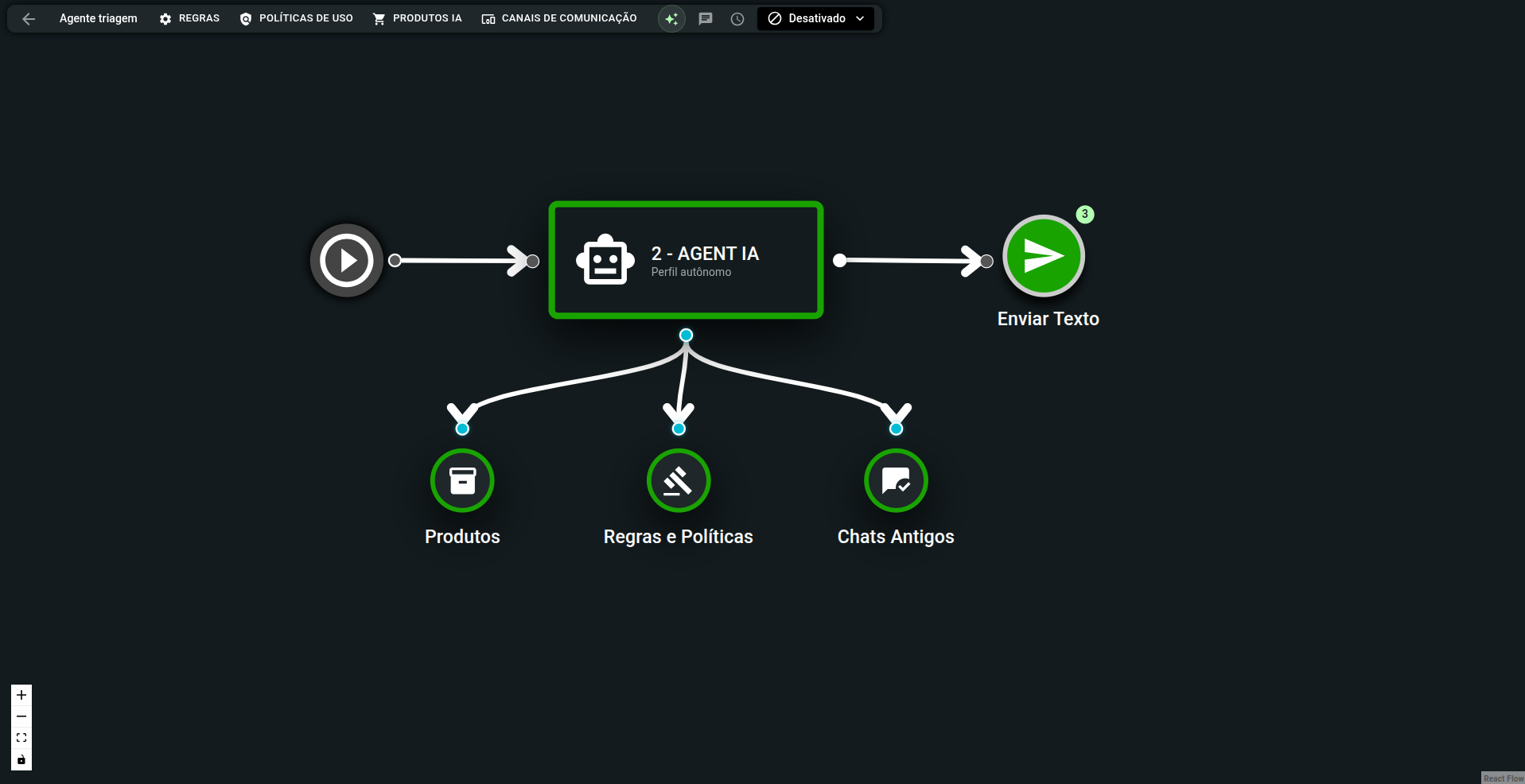 Também é possível configurar um Agente de IA específico para ser acionado a partir de uma palavra-chave ou por meio do clique em um botão do template, clique aqui para visualizar o tutorial completo.