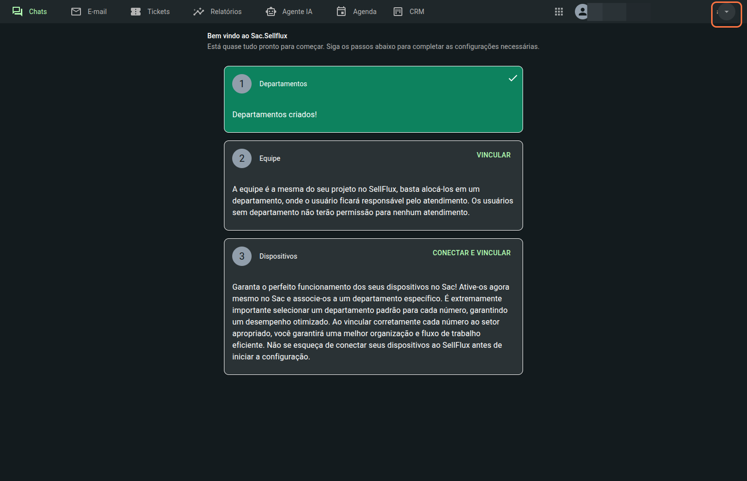 Neste guia iremos explorar as configurações necessárias para começar a utilizar o SAC do Sellflux.