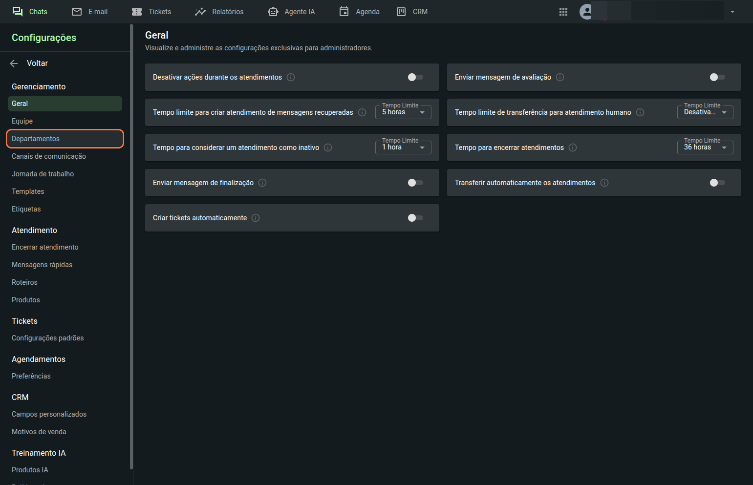 Atribua um ou mais departamentos ao atendente.