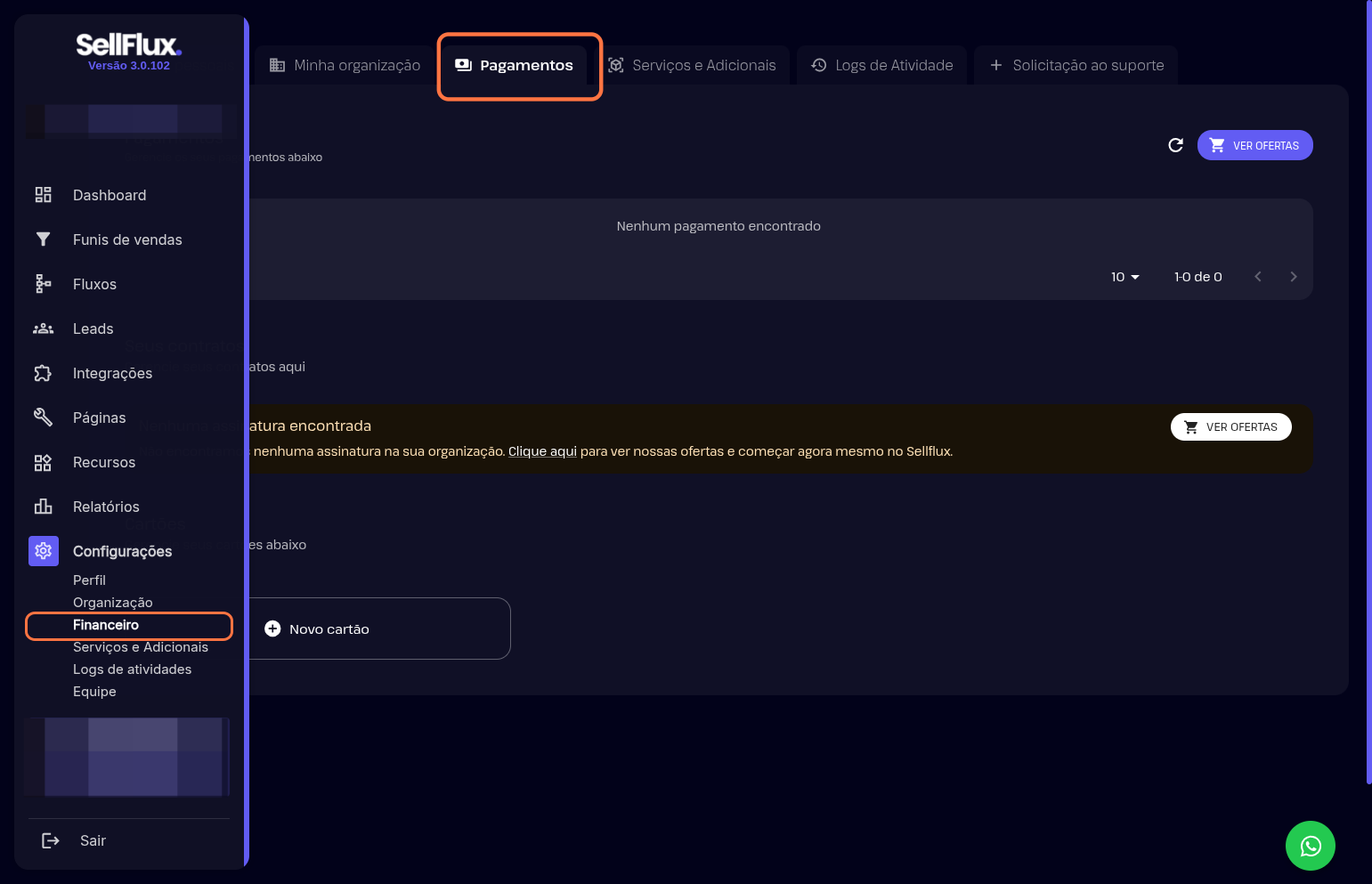 🔴 Somente o usuário administrador dessa organização consegue acessar a aba de Financeiro.