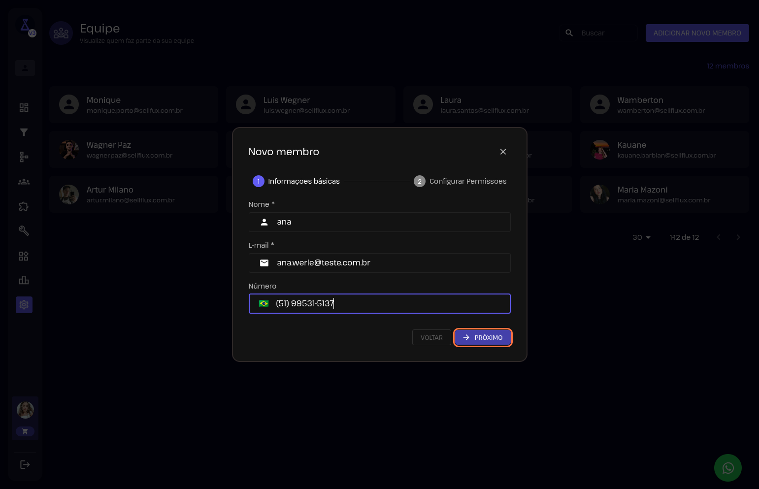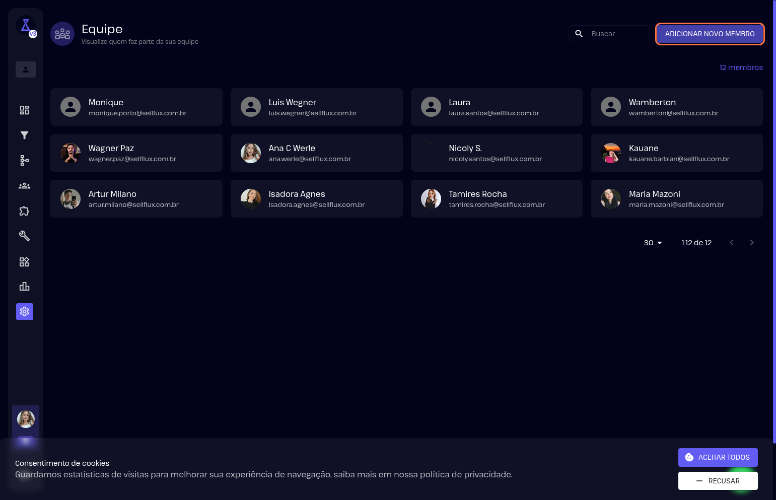 No material a ser abordado, ensinaremos o processo de inclusão dos membros da equipe no Sellflux, além de como configurar adequadamente as permissões de acesso de cada usuário, garantindo que as funções e responsabilidades de cada membro sejam corretamente atribuídas.