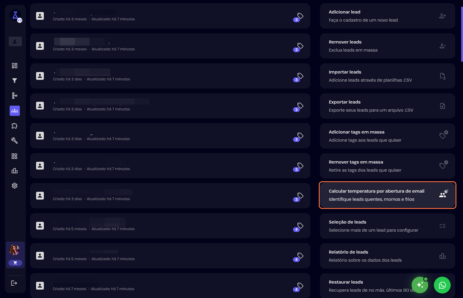 Com o recurso de Temperatura de Leads do SellFlux, você tem total controle sobre o nível de engajamento dos seus leads, podendo segmentar, nutrir ou até gerenciar sua base de forma estratégica.