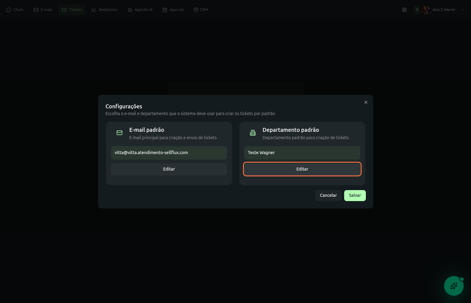 3- Também é necessário configurar o departamento padrão para criação dos tickets, para isso clique em "Editar" e atribua o departamento desejado.